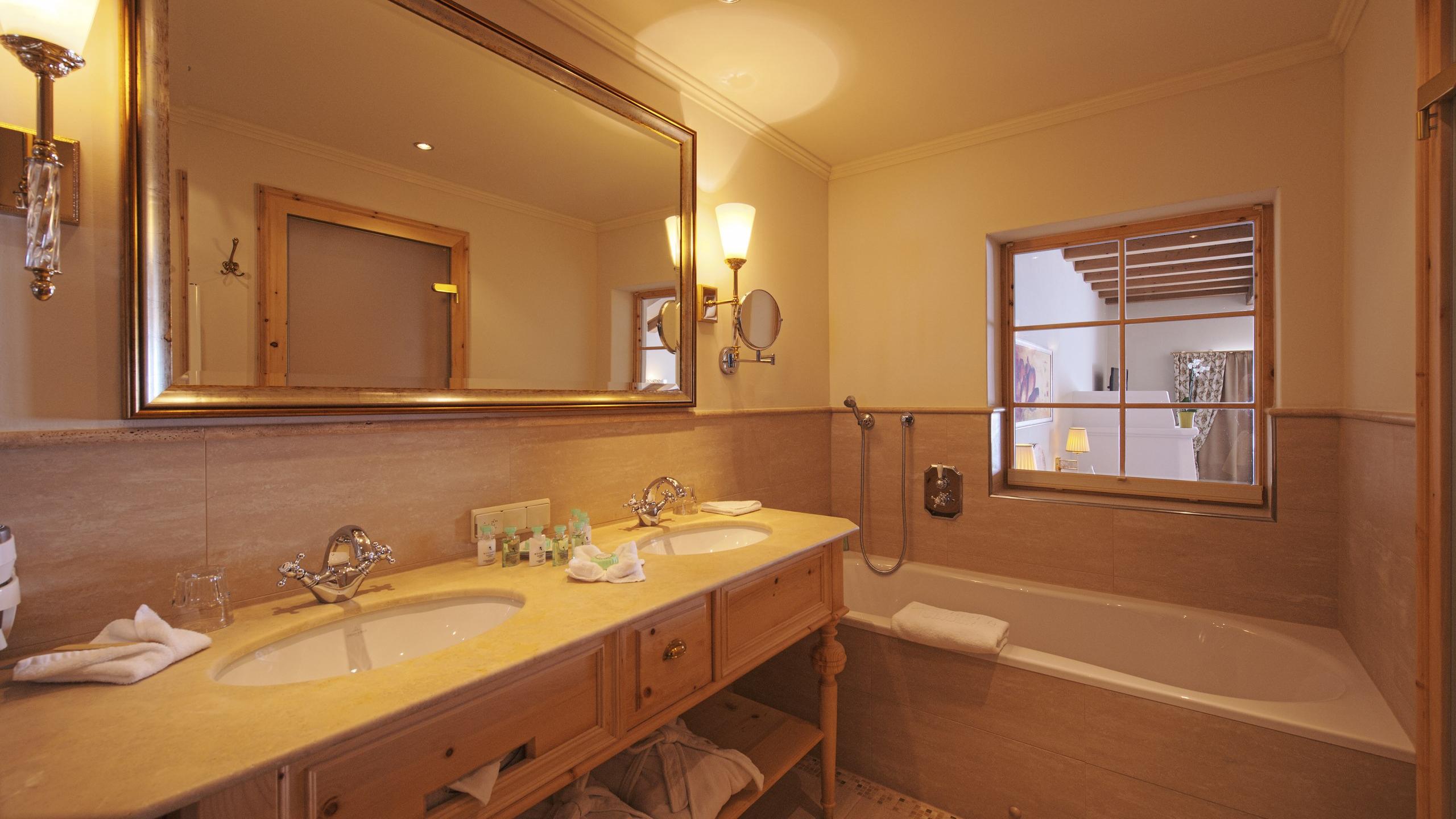 Ruime familiesuites van chic alpendennenhout met woonhoek, gescheiden kinderslaapkamer, marmeren badkamer inclusief dubbele wastafel, royale badkuip, inloopdouche en gescheiden toilet. Sommige met open haard. Speciaal voor gezinnen met 2 tot 3 kinderen.