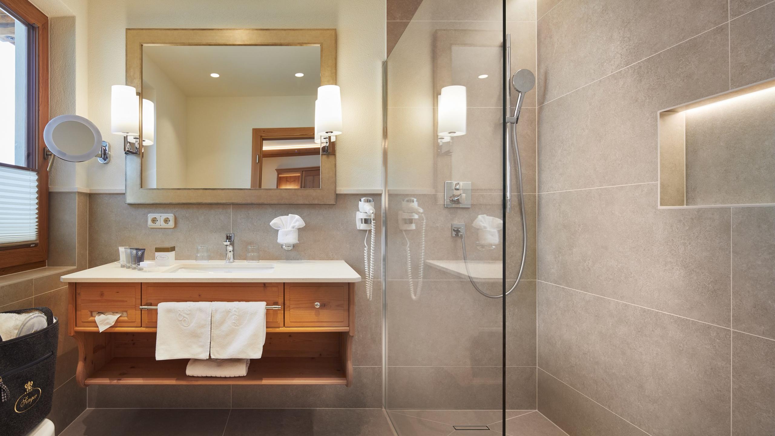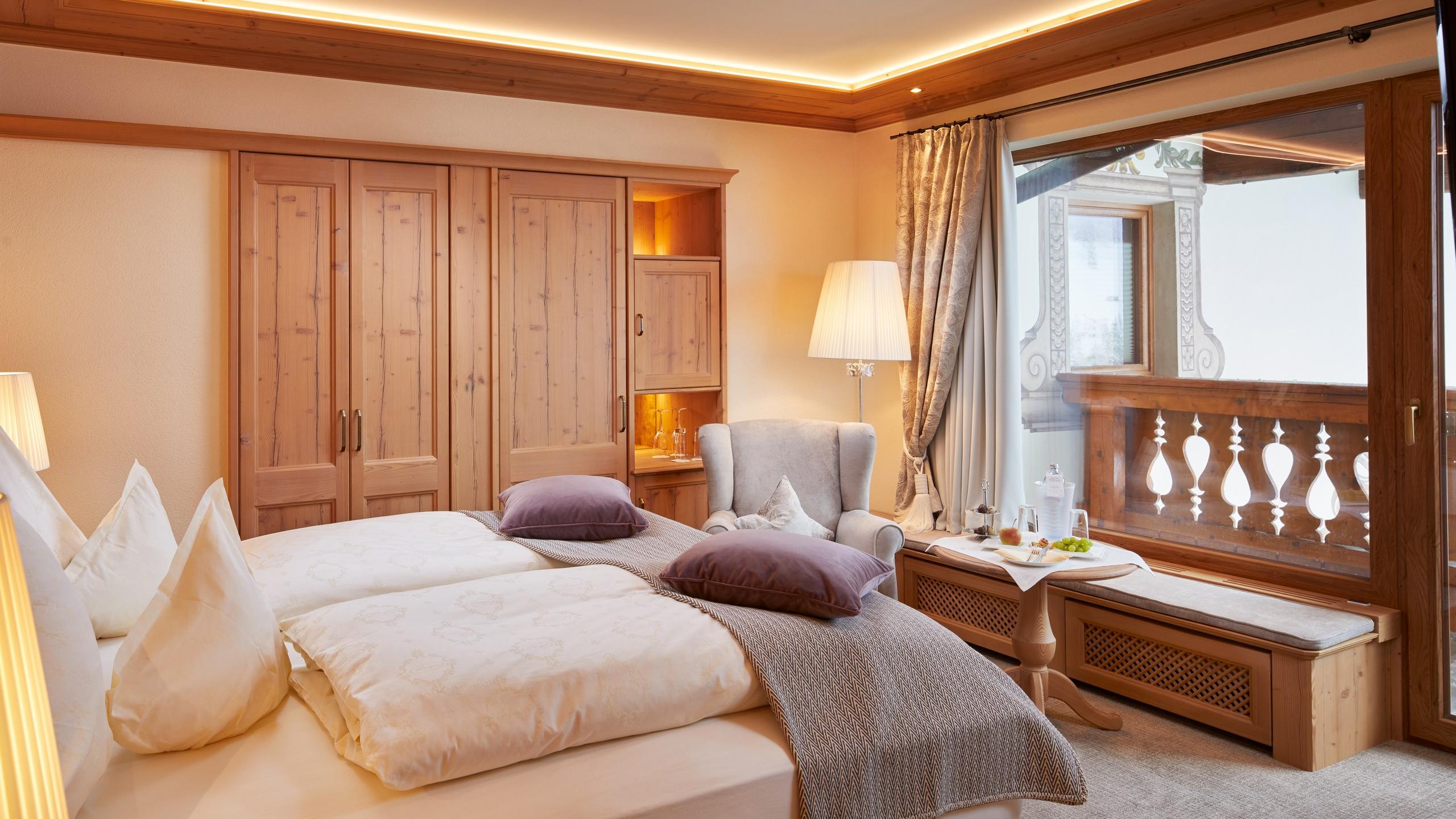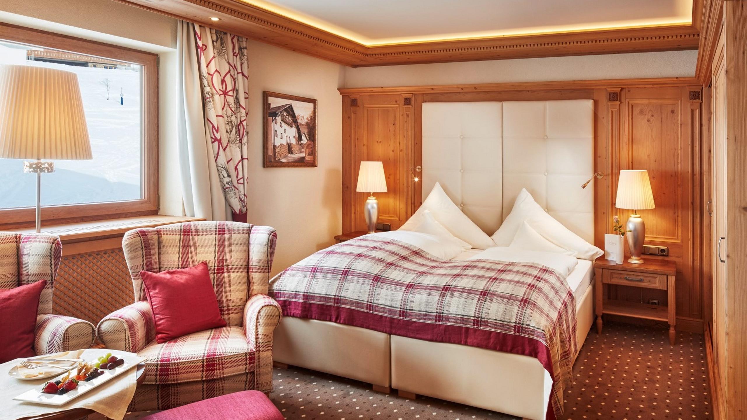 Uitrusting: tweepersoonsbed | gedeeltelijk balkon op het zuiden | sommige met minibar| toilet | douche of bad | föhn | toiletartikelen van Bogner | badtas met badjas en slippers | wifi